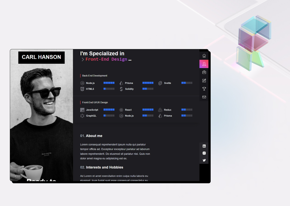 This elegantly created template is intended to draw attention to your accomplishments and foster confidence. With this design, creating a resume website that looks professional and appealing is no longer a hassle.